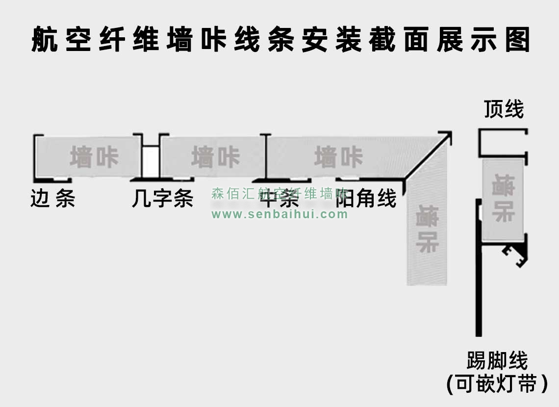 淮南航空纤维墙咔铝合金带灯中条(钛金氧化)